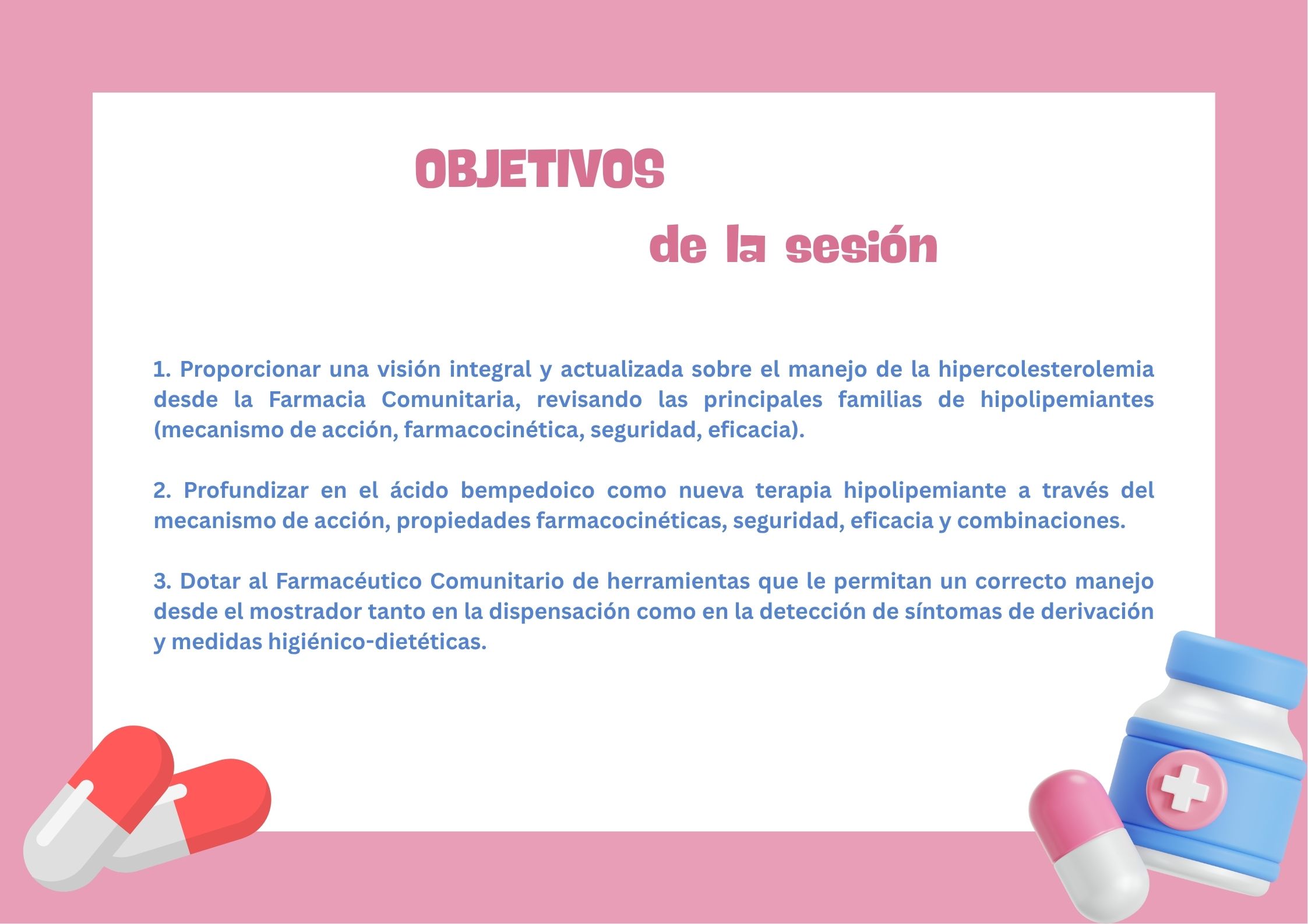 Este curso está diseñado para farmacéuticos comunitarios que buscan estar al día con los avances terapéuticos en el manejo de la hipercolesterolemia, con especial atención al papel emergente del ácido bempedoico como opción terapéutica complementaria o alternativa a las estatinas.